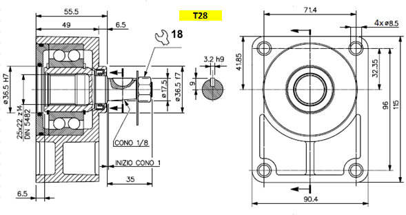 Stödlager Gr.2-konisk axel 1:8